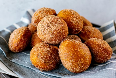Fall inspired… french fried doughnut made with pumpkin puree and spices, then topped with cinnamon sugar.