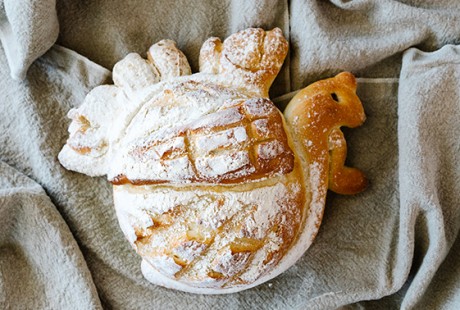This handcrafted turkey shaped bread makes a great table centerpiece or gift. Hollow out the center and add your favorite La Farm spread!